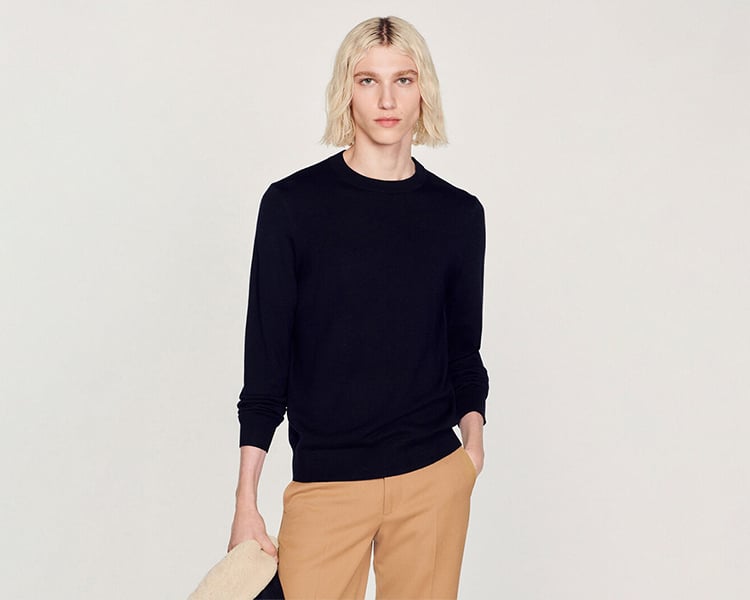 pantaloni de costum de lana bărbați albastru marin Sandro Paris îmbrăcăminte X8Z4NH617